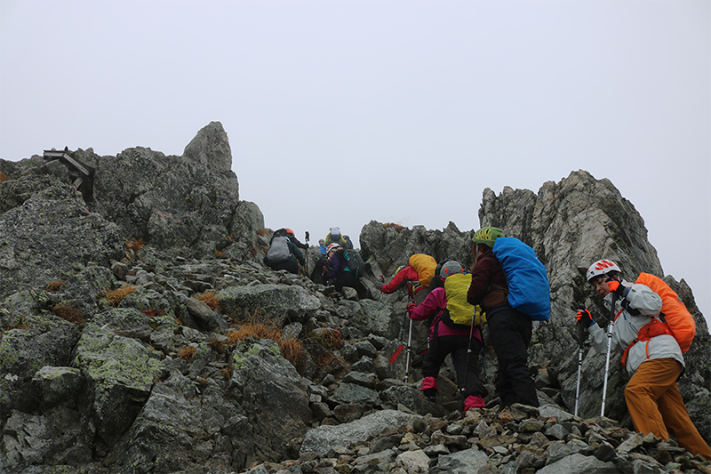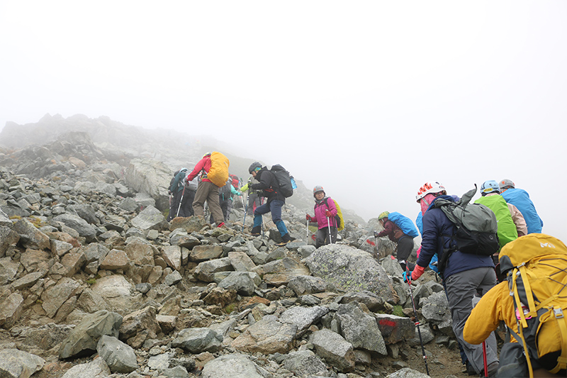 参加者全員の願いは天候が次第に崩れていく中、念願の山頂に辿り着いて記念写真を撮りたい!