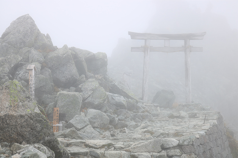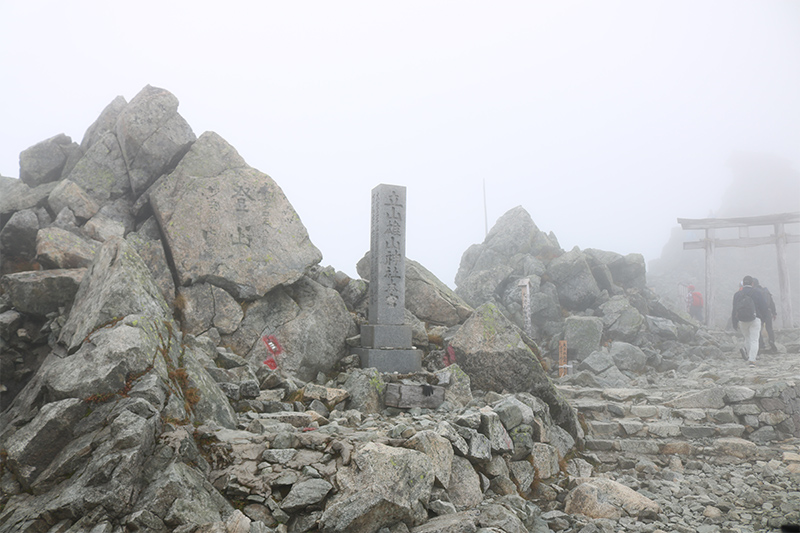 予定ではここで鳥居をくぐりご祈祷の時間も設けていましたが、このあと天候がさらに悪化してきそうなので、順番を入れ替えて先に大汝山へ向かうことにします。
