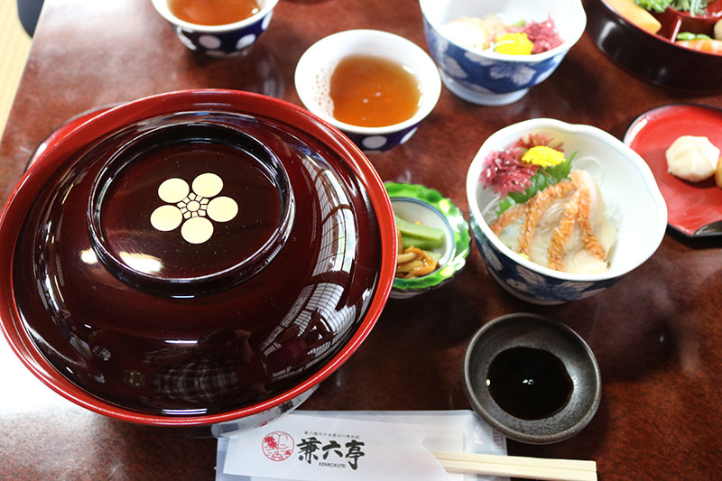 自由散策時間を堪能する前に一行をご案内したのは、兼六園内にある食事処“兼六亭”へ。
