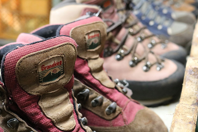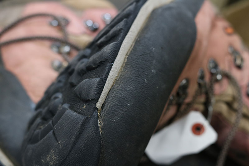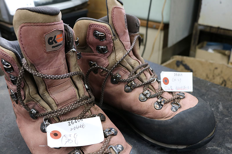 お預かりした登山靴やトレッキングシューズは、一足ずつリペア担当者の目視確認によって状態確認をおこないます。
