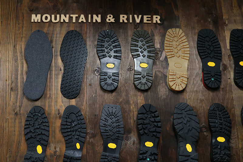 登山靴の多くに用いられているVibramアウトソールから、渓流シューズで使用されているフェルトソールまで多種多様な種類をラインナップしている工房。