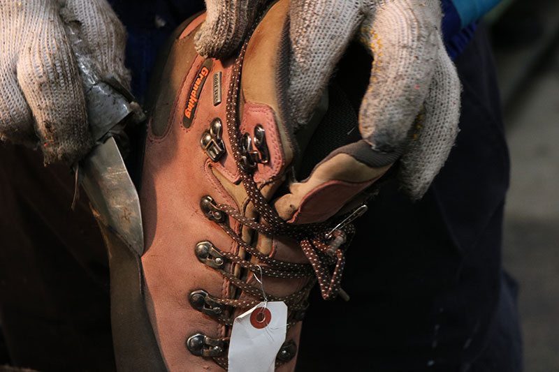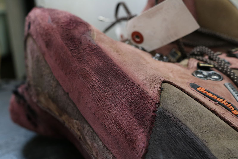 次は別の補修・修理ラインで進められていた別の登山靴、グランドキング『GK30』の様子を見てみましょう。