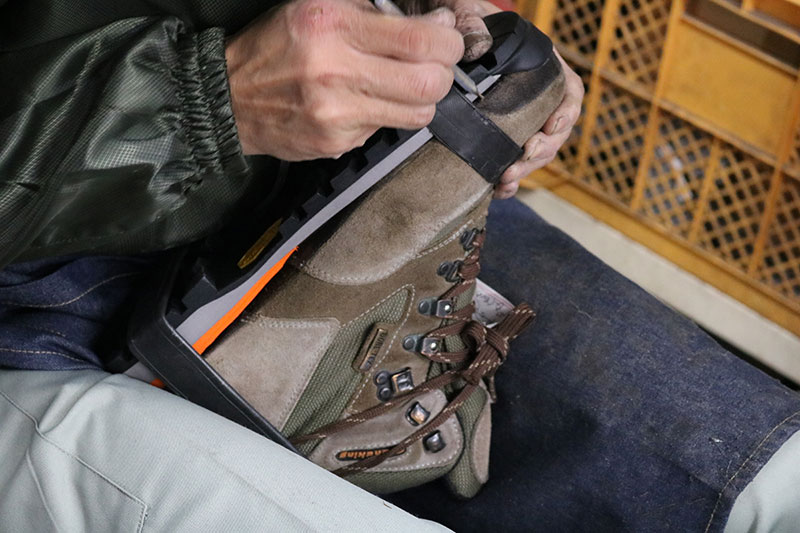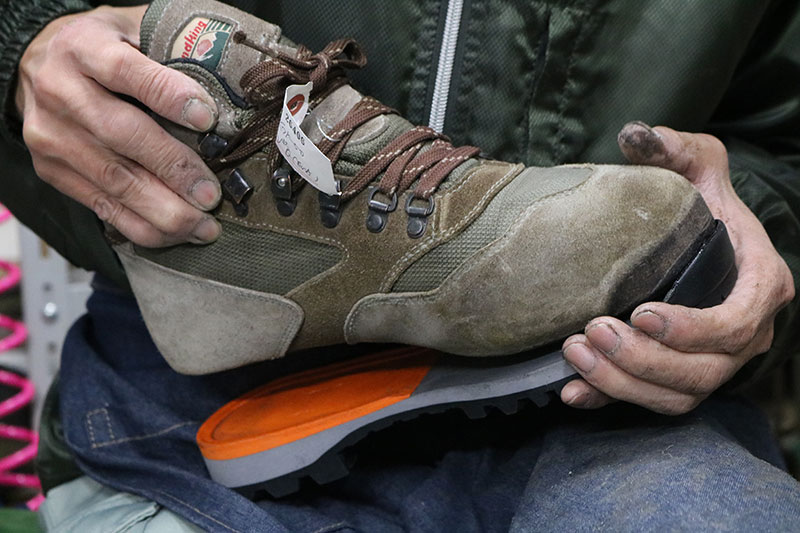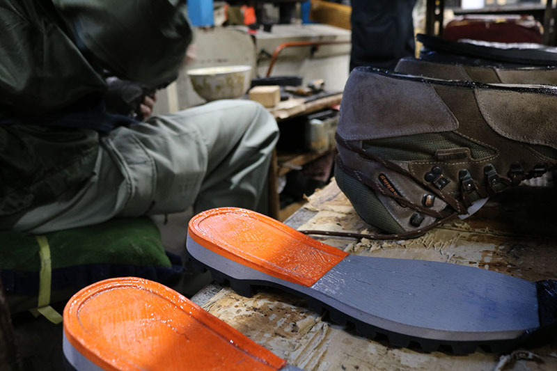 次は別の補修・修理ラインで進められていた別の登山靴、グランドキング『GK30』の様子を見てみましょう。