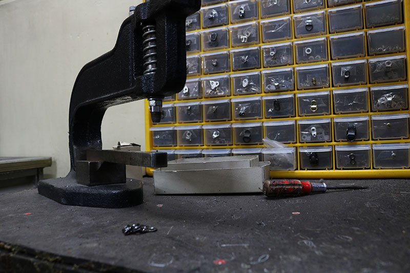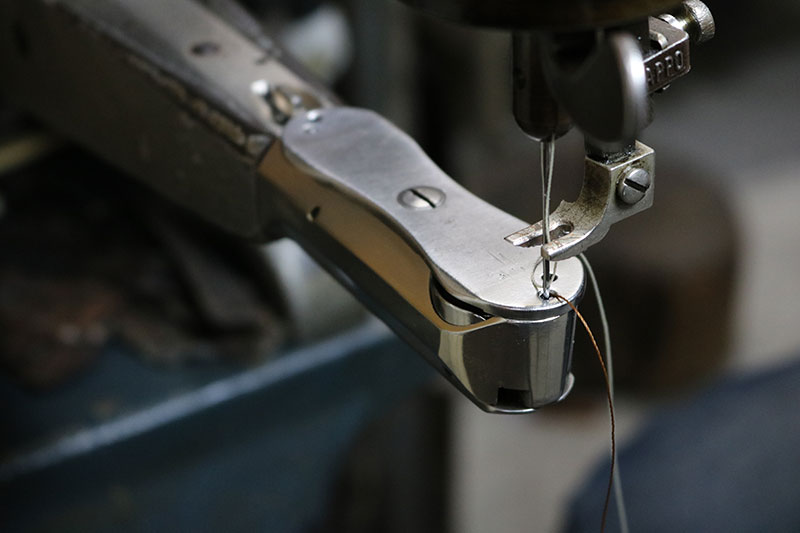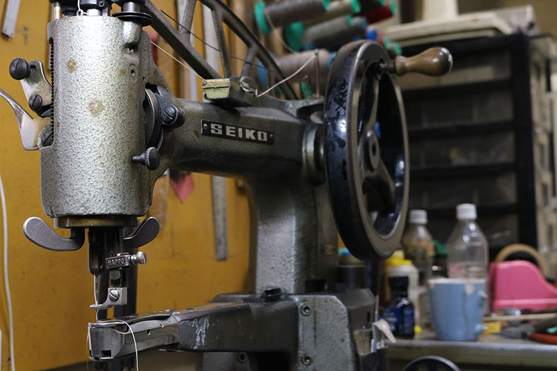 例えば縫製修理に使うステッチ糸の数々に、アッパーを部分縫いするための強靭なミシンなど。