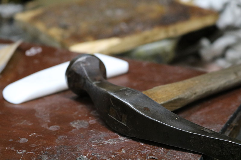 | 工房 | 修理預かり・・・状態確認・・・熱溶解剥がし・・・補修修理・・・接着加工・・・仕上げ処理 |