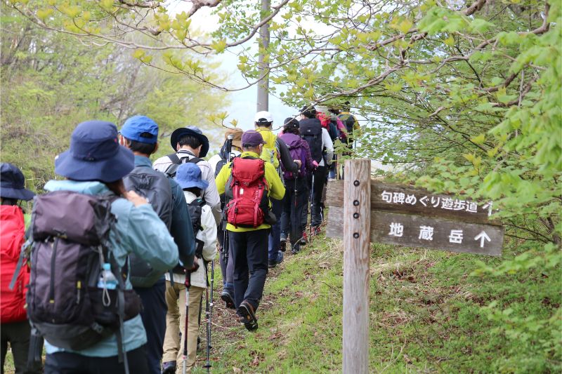 まずは地蔵岳を目指して出発。最初は『句碑めぐり遊歩道』を歩いて移動します。