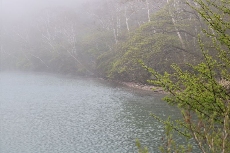 先程とは別の小沼の畔に戻ってきたころには雨も小雨となり、視界もクリアになってきました。