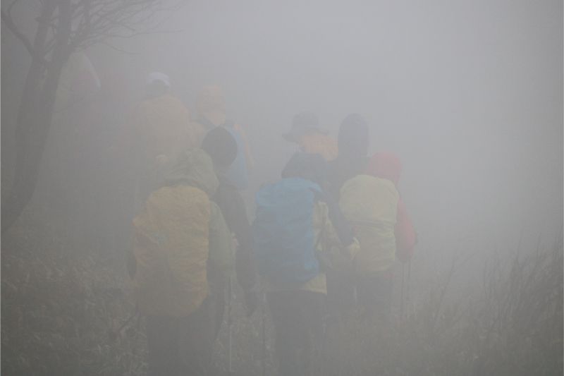 10Mも離れると前方の人の姿が見えにくくなってしまうほどの濃霧が発生。