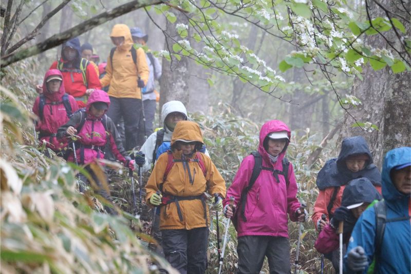 小沼まではどうにか雨に降られず下山することができましたが、さすがに本格的な雨降りとなってきたので皆さん手早くレインウェアを着用して雨天山行スタイルに変身です。