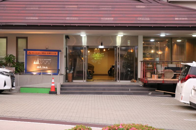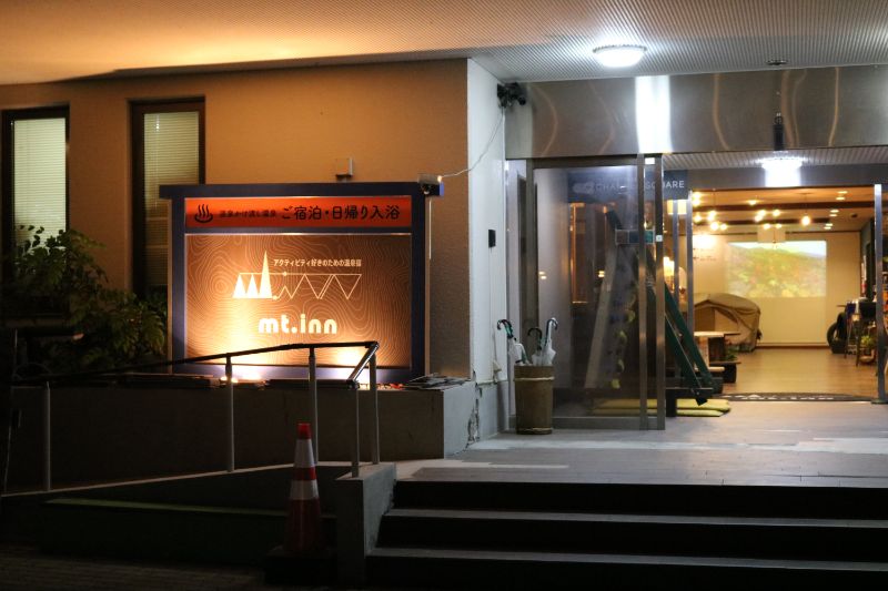 宿泊先、mt.inn マウントイン正面玄関。