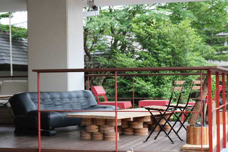 入口横にはウッドデッキ席が設けられ、湯あがりの火照った体に高原の爽やかな風が心地よく感じます。