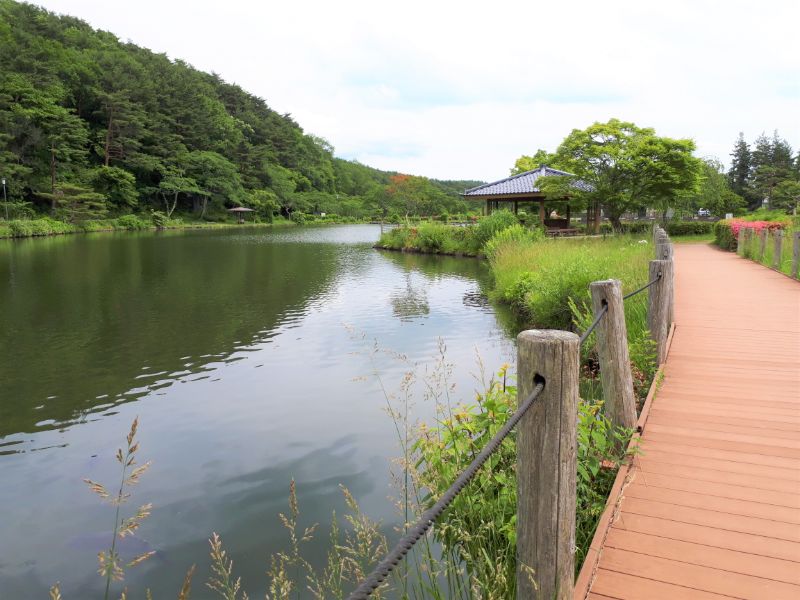 すぐ近くには岳温泉に訪れた観光客のみならず、地元民にも愛される『鏡ヶ池公園』があります。