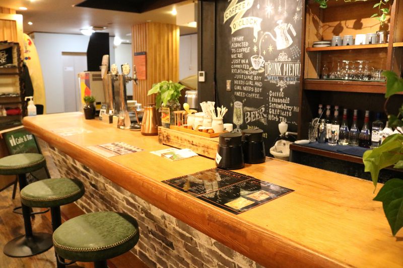 館内にはカウンターバーのほかに飲料自販機もあるので、ここでゆっくり時間の流れを感じながらくつろぐと、山登りで疲れた身体も癒されます。