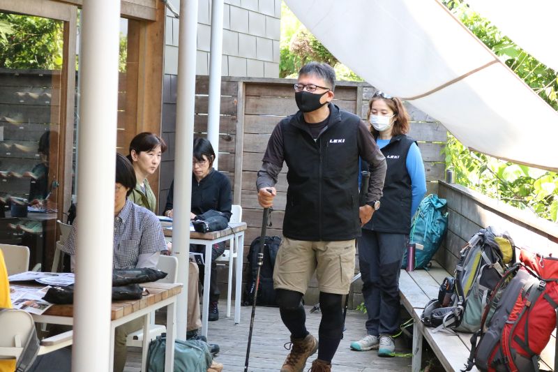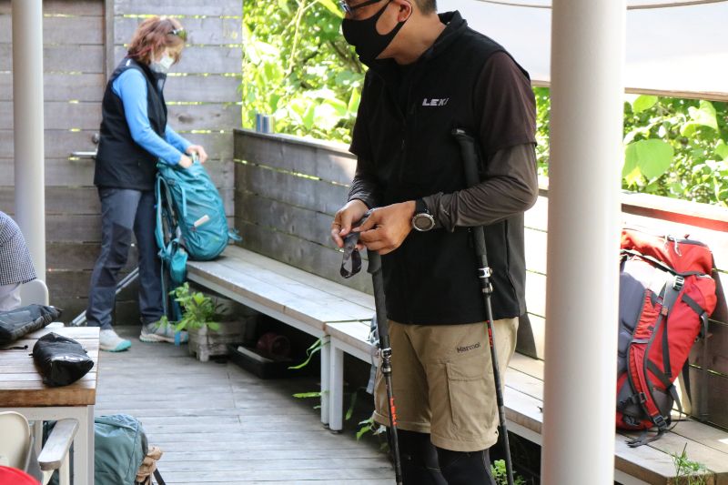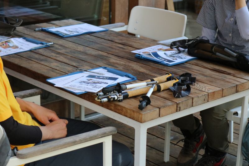 最新モデルのLEKI折りたたみ式トレッキングポールを使って講習会を行います。まだ折りたたみ式ポールを使用したことのない方にとっては、その携行性やコンパクト性に驚かれることでしょう。