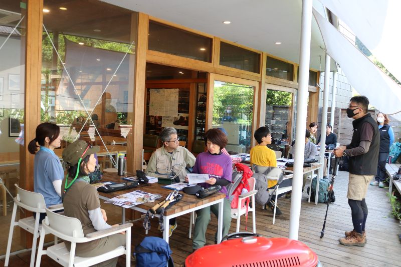 昨年に続き今年も机上講習の場としてご協力くださったのが、高尾山口駅からほど近い【Mt.TAKAO BASE CAMP】。この施設は1階スペースがカフェレストラン、2階はドミトリー宿泊施設となっていて海外からの観光客も多い、人気のカフェレストラン宿となっています。