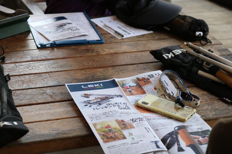当日は陽射しが差し込む開放的なテラス席で、最新LEKIトレッキングポール特別講習会がスタート。