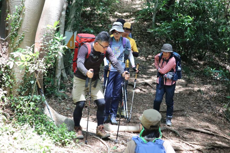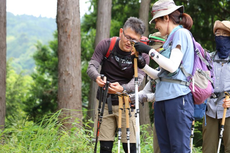 草戸山の山頂を目指しながら要所要所で、トレッキングポールの実用シーンを解説しながら講習を行います。