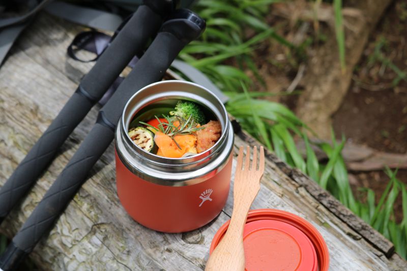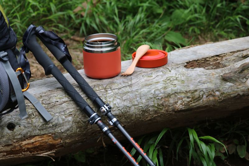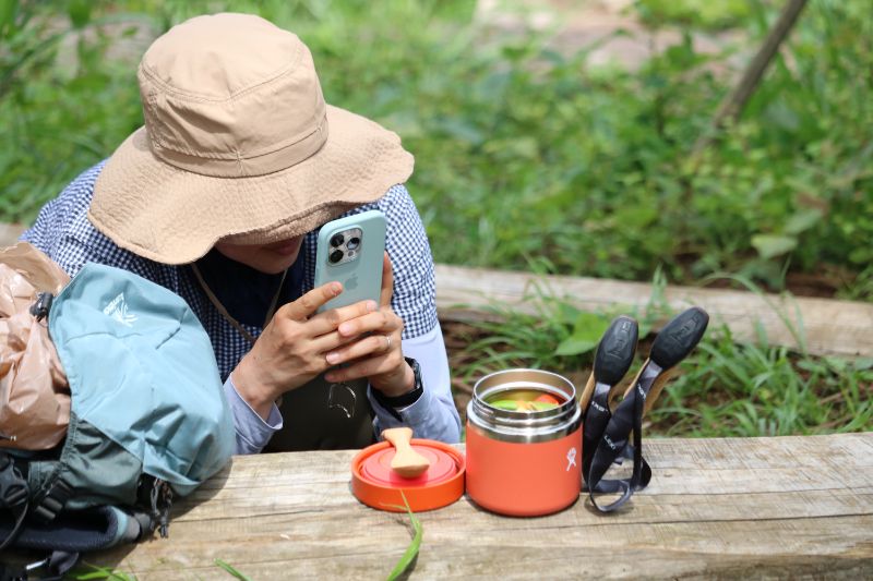 こちらの方も、LEKIトレッキングポールを小道具代わりに加えて、ECOランチボックスと一緒に写真撮影中。