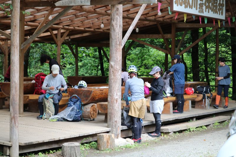 入渓ポイントに移動する前に、北秋川自然休暇村のキャンプ場施設をお借りして身支度を整えます。
