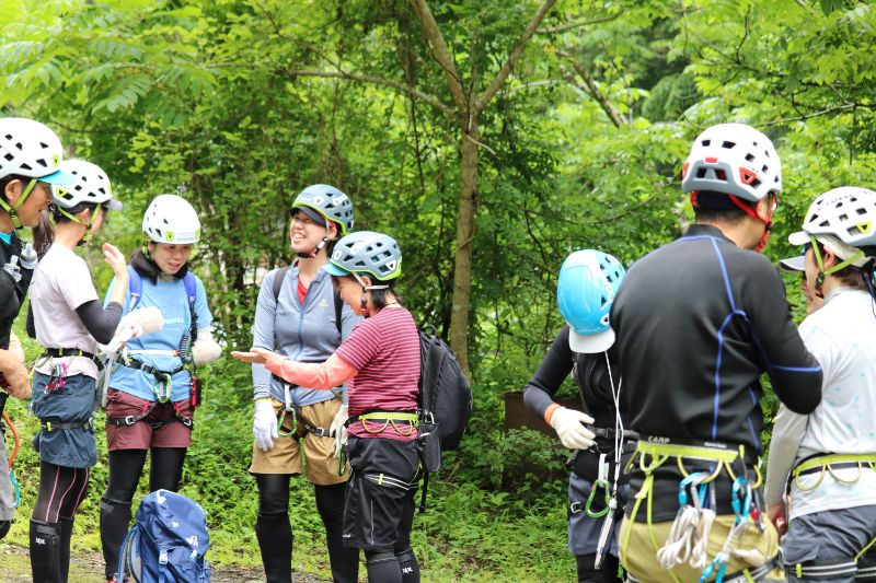 今回の沢登り企画では入門者・初級者を対象として2日間、西多摩郡に位置する『月夜見沢』で体験講習会を開催。1日目は山ガールネット様とアドベンチャーガイズ様との3社合同企画としての沢登り体験会を、2日目は【東京 SHOWER CILMBING】と題して、アドベンチャーガイズ様との2社合同での体験講習会を開催しました。どちらも基本テクニックや沢登りならではの楽しみ方を、講習を通じてお伝えしています。