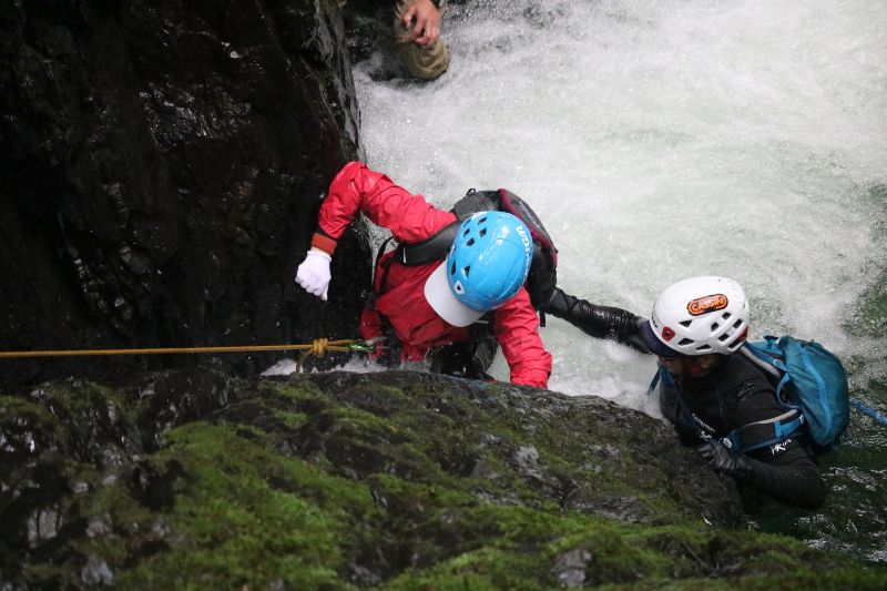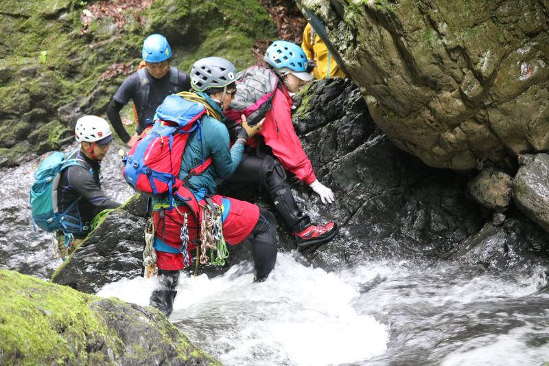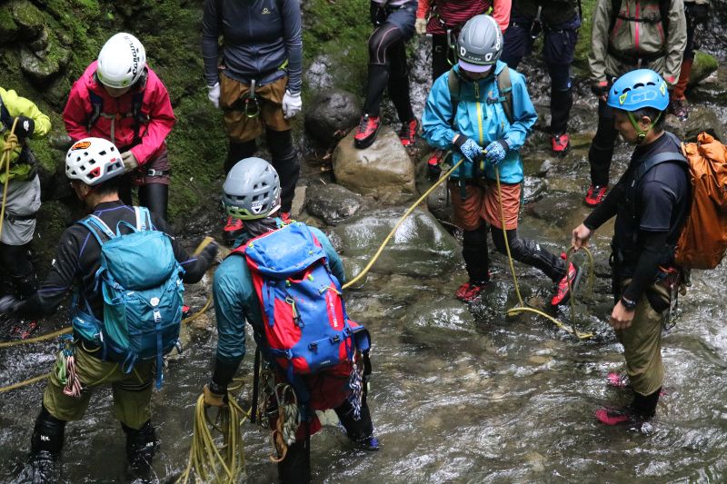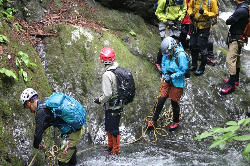 猛暑とは対照的な、状況によっては寒ささえ感じるほどの沢登りは、装備品がとても重要になってきますので、しっかりと準備をしたうえで沢登りを楽しんでもらえればと思います。