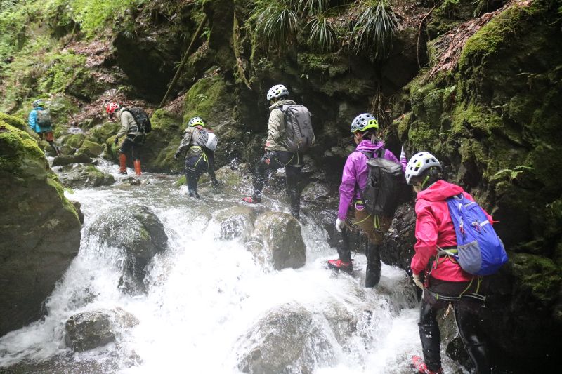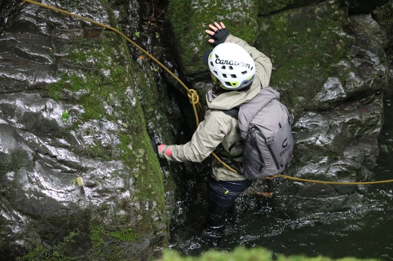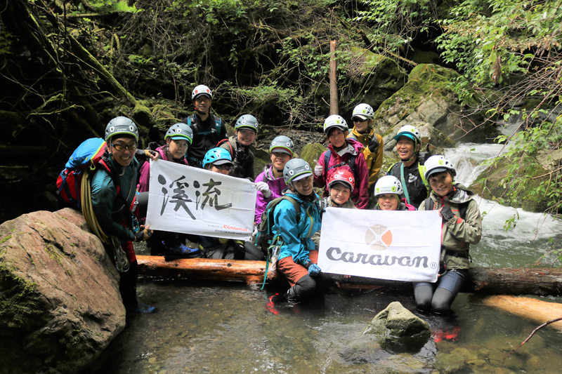 キャラバンでは、このような普段なかなか足を踏み入れることのない場所で、沢登りを楽しめる体験会を開催しています。
