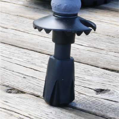 LEKIトレッキングポールにはバスケットを標準装備しています。バスケットは、ポールが岩や木の隙間などに深く挟まるのを防ぐストッパーの役目を果たします。バスケットを外してしまうと、ポールが石突き部分を超えて深く挟まってしまうことがあり、その状態でシャフトに横方向の力を加えると、テコの原理で、軽い力でもシャフトが曲がったり、折れたりする恐れがあります。バスケットは、常に装着した状態でお使いください。