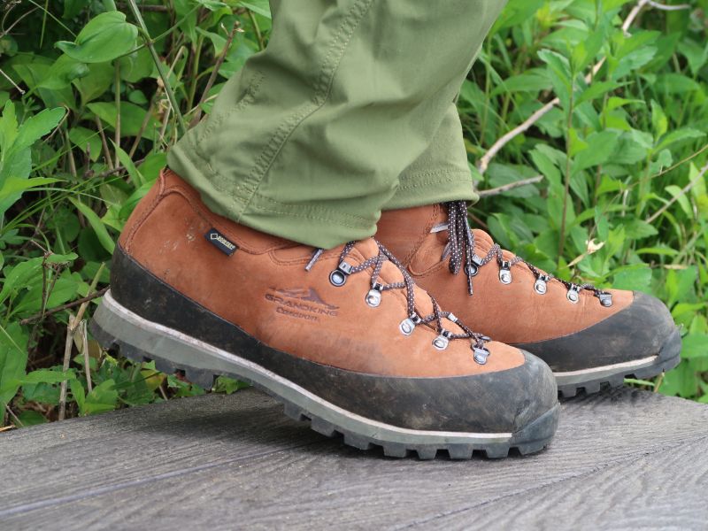 この『GK85』は、グランドキングのラインナップのなかでは“最上位”に位置するものだ。このときの“最上位”という意味は、同社のなかでもっとも頑強で、ハードな使用にも耐えうるものということである。前回紹介したキャラバンシューズ『C1_02S』が柔軟性のある歩きやすい登山靴だとしたら、このグランドキング『GK85』はより本格的に山をガッツリ登るための登山靴と言えるだろう。