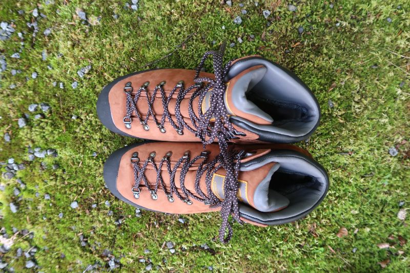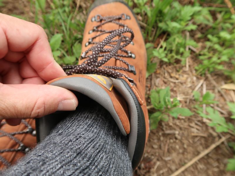 しかし屈曲部自体には靴紐の滑りがよいコードが採用され、そこから足首までは再びフック。だが、この部分のフックの固定力は抑えられており、靴紐を引けばフィット感の微調整がしやすい。細かな形状まで見れば、じつに5種類のパーツが使われており、靴紐によるフィット感の調整がいかに大切であるかということを熟知している登山靴メーカーの姿勢が伝わってくる。実際、足へのなじみはじつによく、かかとの収まりがよいヒールカップと連動して、すばらしいフィット感をもたらしてくれた。