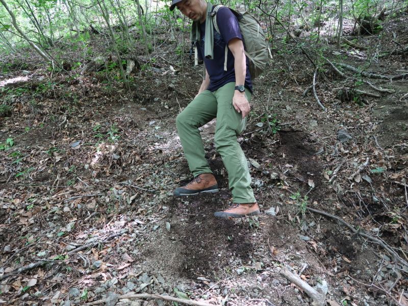 『GK85』のソールは岩肌へのくい付きもよく、岩の上でも具合はいい。よほど急峻な岩場でなければ、支障なく歩けるはずだ。
