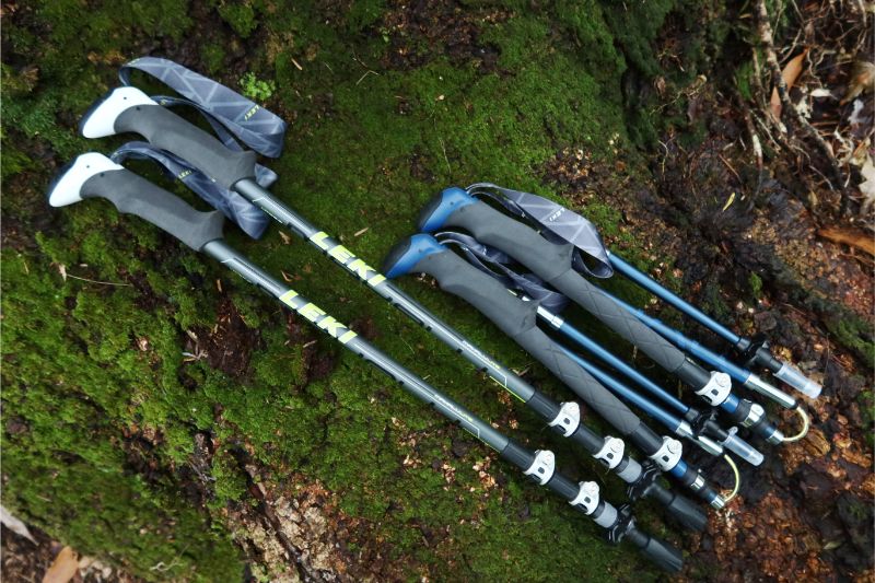 トレッキングポールは体を前進させる力をサポートするだけではなく、歩行時の体のバランスをとって疲れを軽減し、転びそうになったときに体を支えて怪我を防止する役目も持っている。今回はこんな2種を比較しながらテストしたが、レキには今回ピックアップしたタイプに限らず、グリップの径を細くした女性向けタイプなど、さまざまなモデルが用意されている。