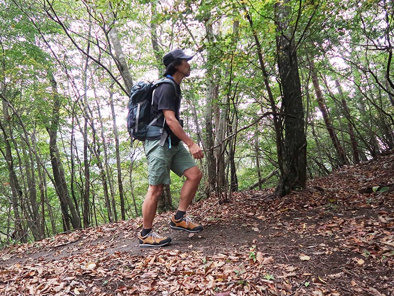 落ち葉が積もっていたり、地面が露出していたりする場所を「GK26」で歩く場合は、意識的に木の根や地面に埋もれた岩などにアウトソールをかけながら歩くといい。まあ、それはどんなシューズで歩くときにもいえることだが。