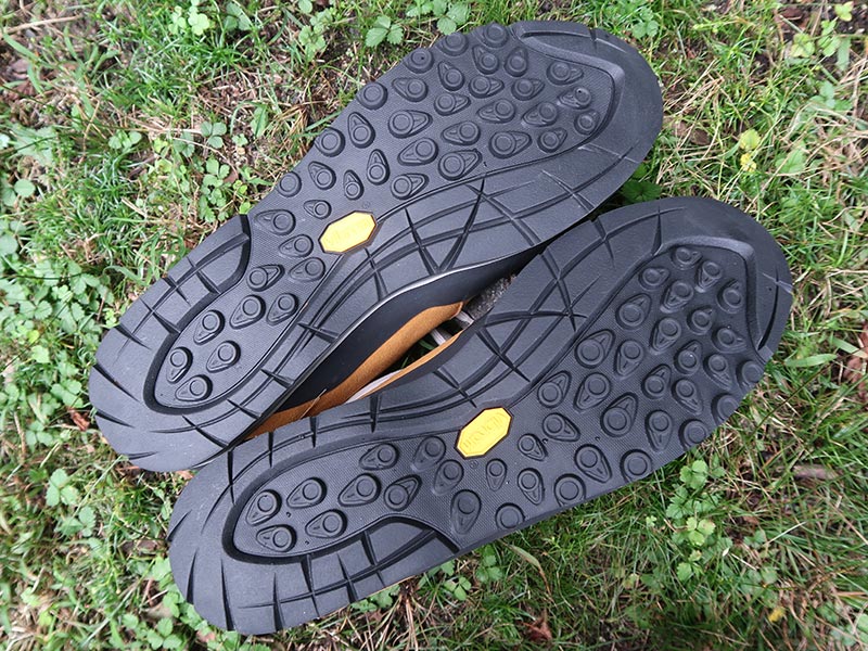 アッパーは強靭な1.6㎜のスエードレザーと合成皮革、メッシュポリエステルを使い分け、アウトソールはグリップ性能が極めて高いヴィブラムのメガグリップ仕様。つま先、側面、かかとは頑丈なラバーで覆われている。