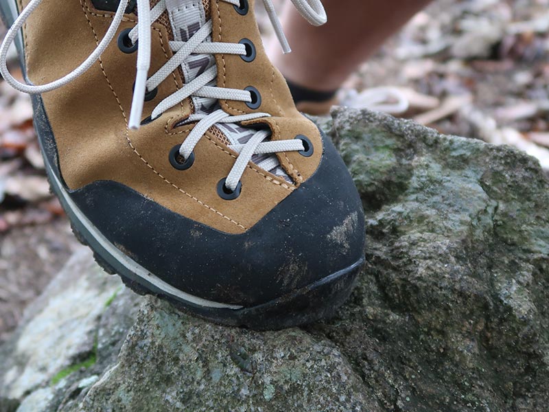 厚みのあるスエードレザーのような素材は、使いこむほどに履き心地がよくなっていく。履くたびにアッパーが柔らかくなり、ますます足にフィットするようになっているのがうれしい。岩が多い山ではアッパーが傷みがちだが、その点も問題はなさそうだ。