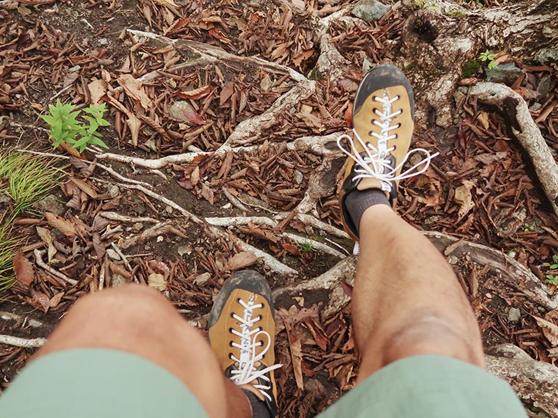 一方、トレッキングシューズは柔軟でアウトソールも曲がりやすく、歩きやすさを考えれば、アプローチシューズ以上だ。ミッドソールの弾力性や衝撃吸収性も高く、足腰に負担もかかりにくい。だが、岩の上でも滑りにくいのは硬めのアウトソールをもつアプローチシューズ。アッパーの耐久性も高いのがメリットだ。