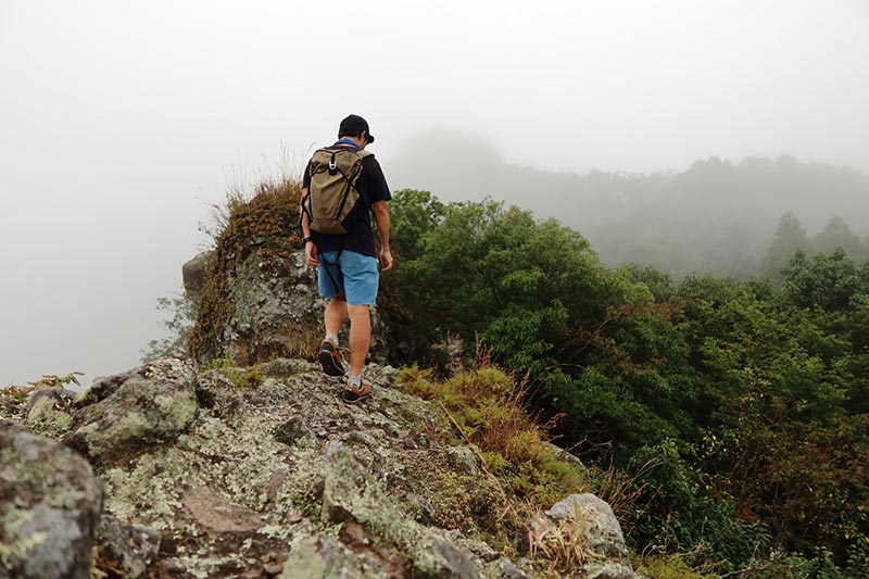 以下の写真のように岩の上を歩いていると、アウトソールのサイドの滑りにくさはたしかにありがたい。