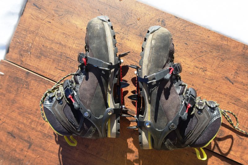 ただし、より条件が厳しいシチュエーションでは、やはり10~12本爪のクランポンのほうが安全度は高い。