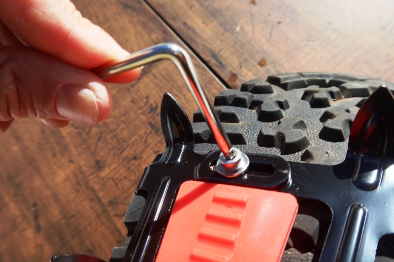 付属のレンチでクランポンの裏に2ヶ所設けられている金属パーツを緩め、適切な位置に微調整する。