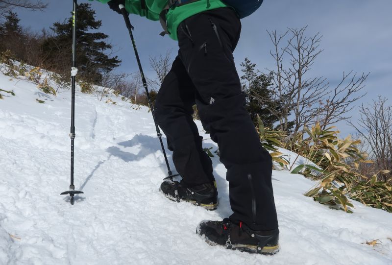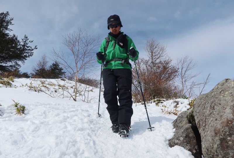 そもそも、前述したようにアイスマスターライトは雪山登山向けではない。起伏が少ない場所での雪中散策などに適し、その代わりに軽量でコンパクトになるタイプなのだ。また、フロストも本来は雪の急斜面は得意とせず、急峻な高山では力不足。だが、起伏が緩やかな低山や残雪の山では頼りになる。