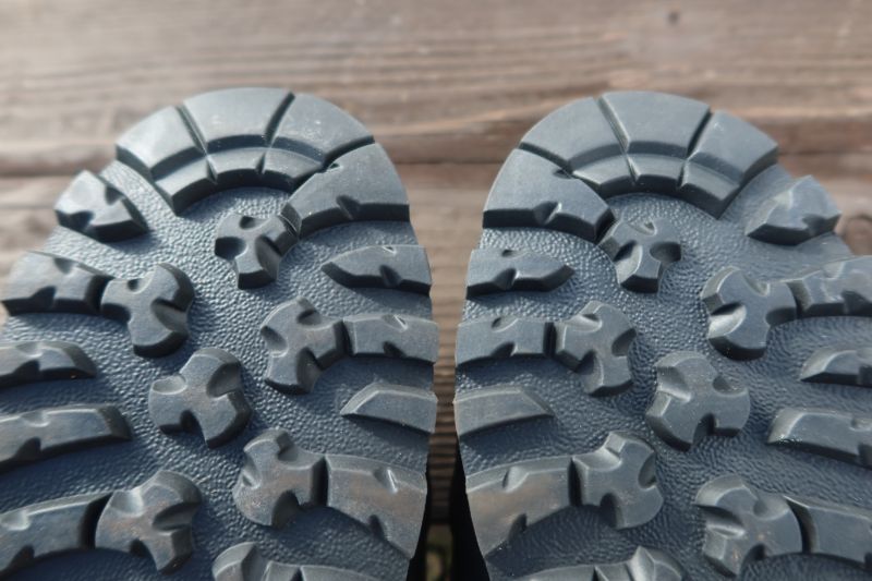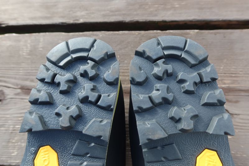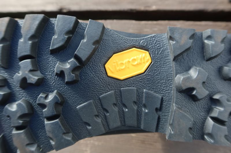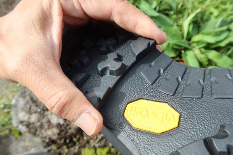 ここで採用されているヴィブラム・アウトソールのXS-TREKは、トレッキングに適したコンパウンド配合となっているためゴム硬度が柔らかく、指で押すとたしかな弾力性を感じる。