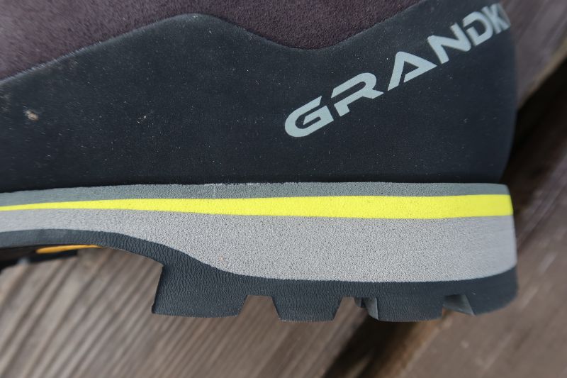 また、些細な点だが、岩場向けのライトアルパインタイプならば、アウトソールの前足部と後足部の間にはラグがないのが一般的だ。しかしGK88はかかととの段差の近くまで凹凸がつけられているのがユニークである。