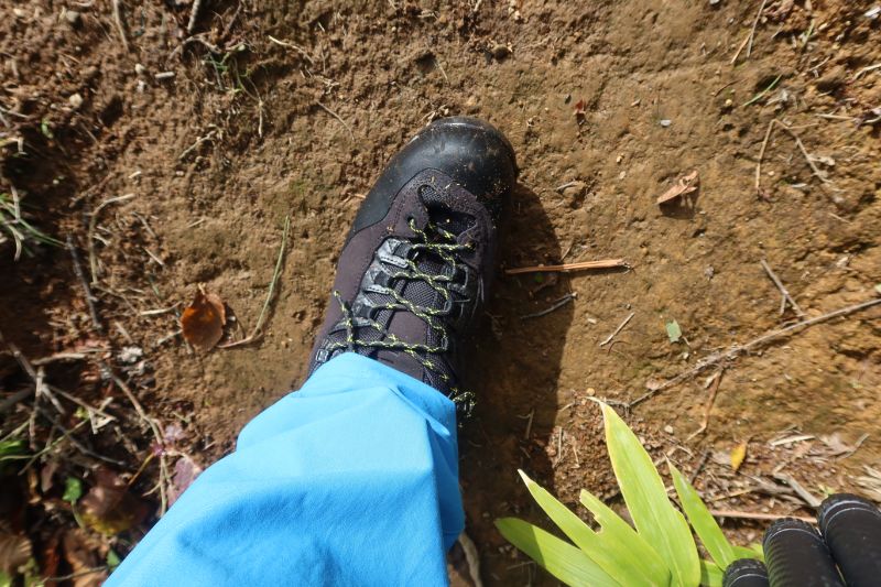 これはアウトソールのラグ(凹凸)の間の幅が広く、土が付着しにくい設計になっているからだろう。雨が多い季節や湿った土が多い登山道では非常に有用だ。
