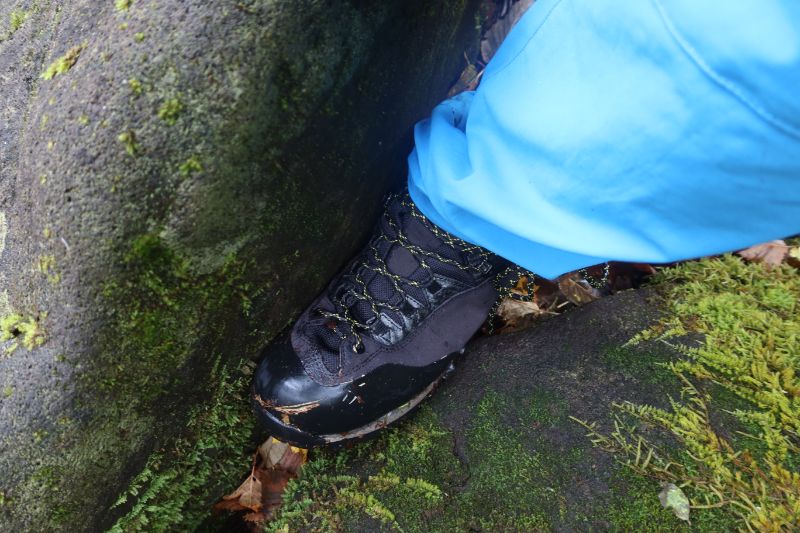 アウトソールとの連動で斜めになった岩の上でも体がブレず、なかなかの安定感だ。