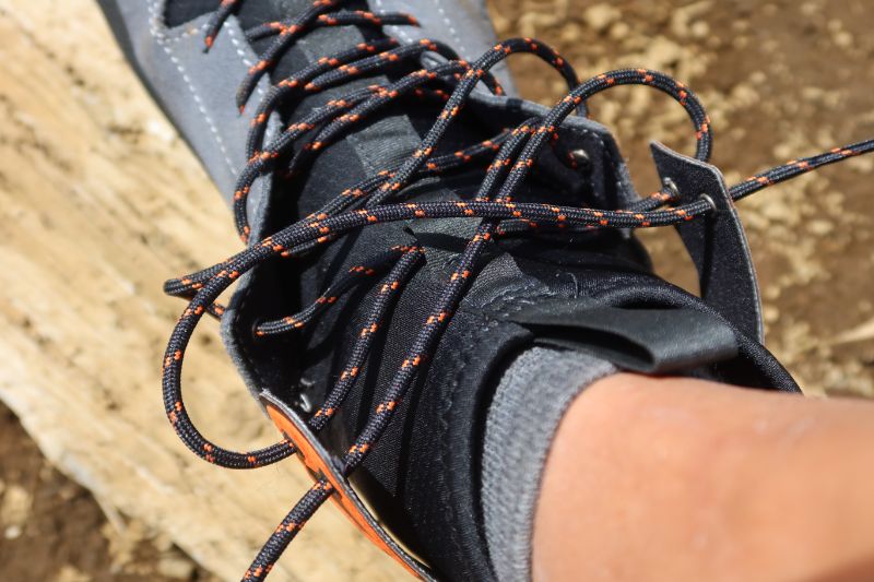 ただ、このようにひとたび足を入れればフィット感に優れるサラテ5.13 GTだが、カフの伸縮性が高いために、シューレースを緩めても足の出し入れがしにくいこともある。