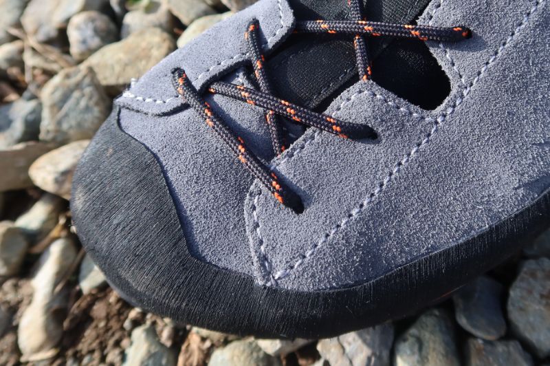 つま先部分はかなり先端近くまでシューレースで締め付けることができる。このあたりもアプローチシューズの特徴と似ている点だ。