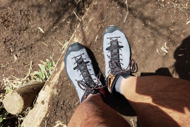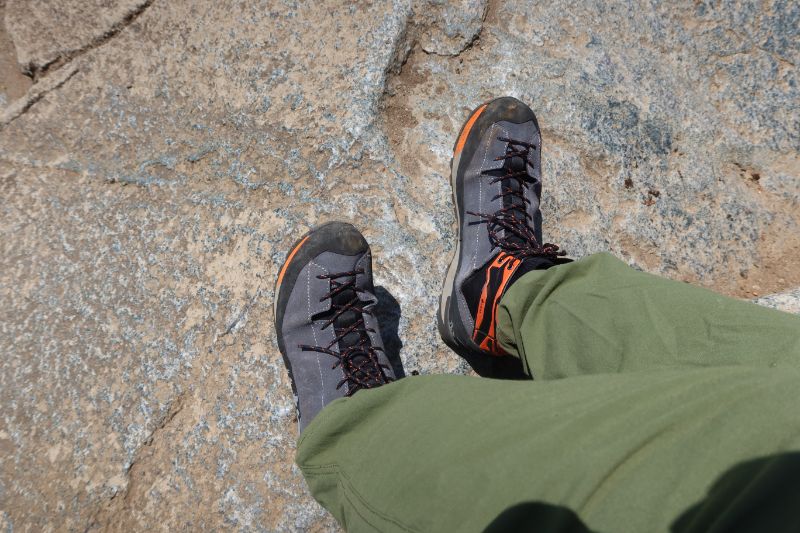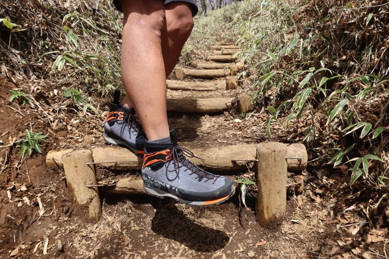 また、あれだけミッドソールやアウトソールが薄いにも関わらず、木段のような場所を長く歩いていても足に受ける衝撃はあまり感じられない。一般的なアプローチシューズと比べると、かなり快適な履き心地といってよい。
