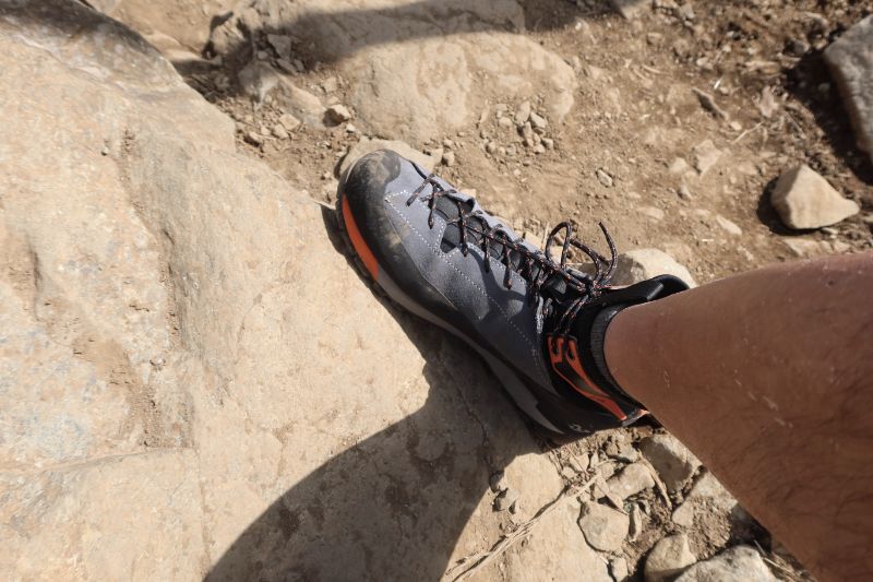 では、ここからは実際にサラテ5.13 GTを履き、山を歩いたときの様子だ。総じていえば、テスト前のチェックで感じた点がほとんど実証されたかのような優れた履き心地であった。