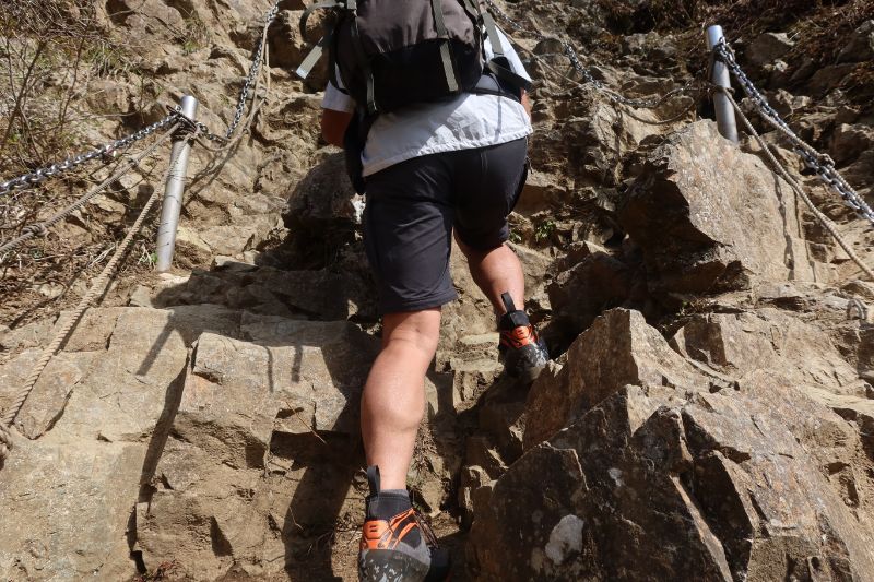 とはいえ、岩の表面に乾いた土がついていると、それが潤滑剤のような影響を与え、さすがにいくらかは滑ってしまう。だが、そうでもなければ一般的な登山靴のアウトソールよりは確かに滑りにくかった。