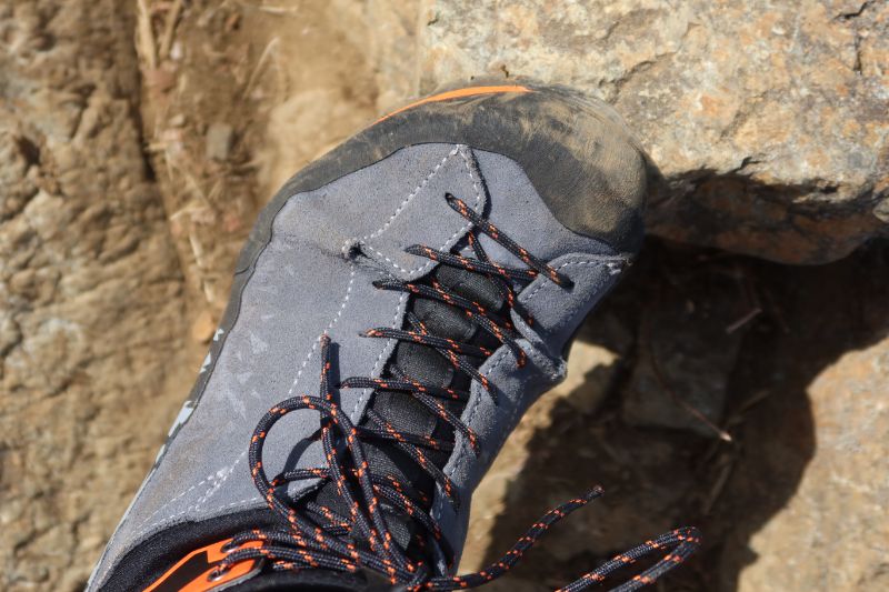 アッパー素材自体がソフトなこともあって、柔らかに足を包み込み、フィット感は上々である。また、つま先からかかとまではランドラバーで覆われ、岩などにぶつかったときに足を守る力も十分で安心できる。
