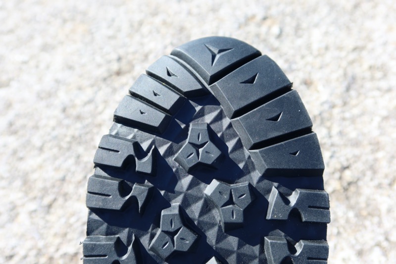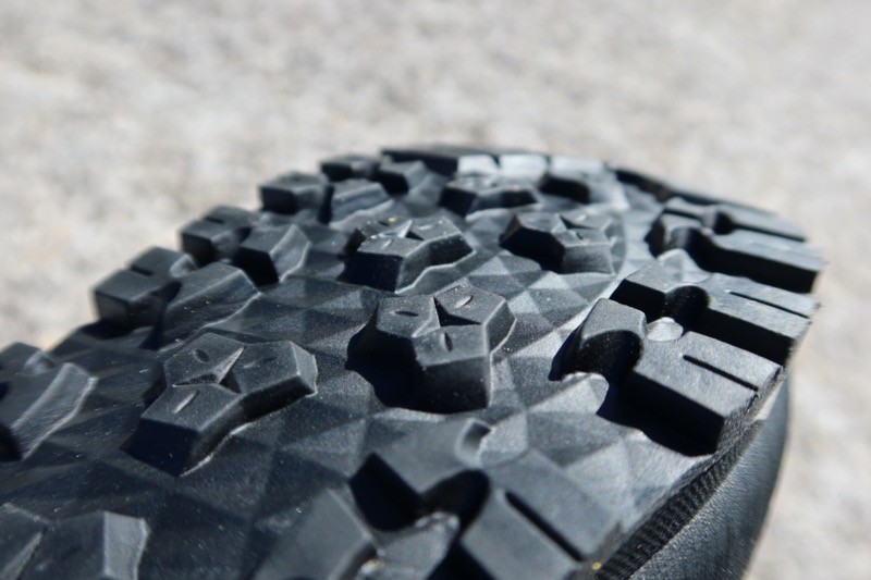 このアウトソールの凹凸は比較的浅く、それぞれの凹凸の間も広い。これもまたアプローチシューズによく見られる特徴である。